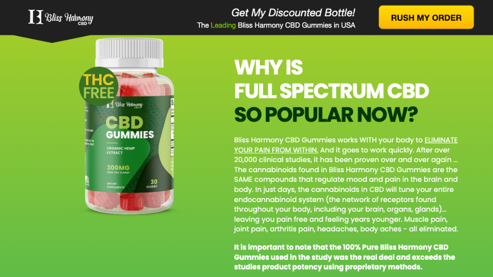 Bliss Harmony CBD Gummies USA offer a tasty, reliable path to natural calm, pain relief, and better sleep. With broad-spectrum CBD, organic ingredients, and 4.4/5 Trustpilot ratings, they provide subtle, consistent support without THC risks. Ignore scam ads—buy official for lab-tested quality and 90-day guarantee. For those in the USA seeking enjoyable CBD, Bliss Harmony 300mg CBD is a smart, low-risk choice with a healthy lifestyle. Try them for balanced days ahead!