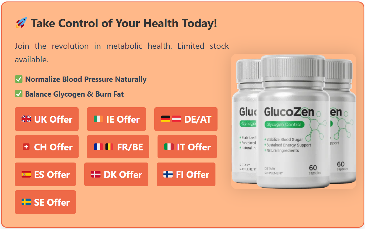 GlucoZen Glycogen Control Support provides a thoughtful, multi-herbal option for individuals prioritising natural glucose stability, steadier energy, and reduced cravings without stimulants or aggressive interventions. With ingredients linked to metabolic research and many users reporting gradual improvements in daily comfort when used consistently, it complements balanced lifestyle changes effectively. Results are not guaranteed and vary significantly between individuals, but the gentle nature and trial guarantees make it one of the more approachable choices in the natural metabolic-support category. Focus on sustainable nutrition and movement first — GlucoZen can serve as a helpful supporting element rather than the entire strategy.
