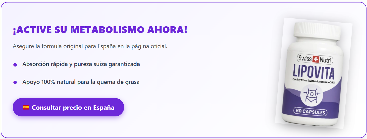 En 2026, la mayoría de las personas en España que buscan apoyo para el control de peso han dejado atrás los quemadores de grasa agresivos con altas dosis de cafeína que prometen pérdidas rápidas pero suelen provocar bajones de energía, hambre de rebote o efecto yo-yo.Hoy en día, cada vez más adultos buscan complementos suaves, realistas y agradables de tomar a diario: fórmulas que ayudan a mantener una energía estable durante el día, reducen las ganas de picar entre horas y acompañan una pérdida de grasa progresiva y sostenible, sin nerviosismo, dependencia ni sensación de privación.Las cápsulas a base de plantas y fibras se han convertido en una de las formas más valoradas porque son fáciles de integrar en la rutina diaria y no dan la sensación de estar haciendo una dieta extrema. Swiss Nutri Lipovita (también buscada como Lipovita, Lipovita España o Lipovita Diet Capsules) se sitúa perfectamente en esta categoría madura y centrada en el usuario. Presentada como una mezcla diaria de plantas y minerales, combina varios ingredientes tradicionalmente utilizados para apoyar el metabolismo de las grasas, la regulación del apetito, la estabilidad energética y el confort digestivo, sin estimulantes fuertes.Este análisis neutral de 2026 recopila los patrones de opiniones de usuarios reales, explica la lógica de los ingredientes, establece plazos realistas y ofrece contexto práctico para que puedas decidir si Lipovita encaja en tu estilo de vida.