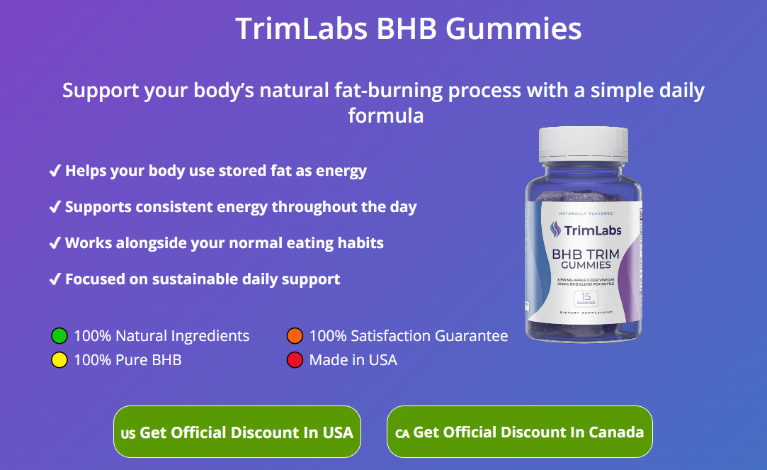 TrimLabs BHB Trim Gummies offer a pleasant-tasting, straightforward way to bring exogenous BHB ketones into a daily routine — particularly appealing to people in the USA and Canada who prefer gummies over powders or capsules. The combination of BHB salts with supportive natural ingredients makes them a user-friendly choice in today’s supplement market. While they cannot replace a balanced diet, regular exercise, or professional medical guidance, many consistent users report reduced appetite, steadier energy, and better adherence to healthy habits after 4–8 weeks. Individual results vary significantly depending on diet, activity levels, and personal biology. The mild profile and guarantee options make TrimLabs BHB Trim Gummies a relatively accessible entry point for anyone exploring supportive tools for long-term wellness. Strong foundational habits remain essential — these gummies can simply act as a sensible, convenient supporting element along that journey.