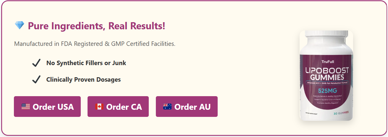 By 2026 Canadians searching for weight-management support have largely moved away from high-stimulant fat burners, extreme calorie restriction plans and products that promise dramatic weekly losses but often deliver rebound hunger, energy crashes or unsustainable results. The current preference leans toward enjoyable, realistic daily aids that gently support steadier all-day energy, help quiet unnecessary snacking urges and assist gradual, maintainable body-composition progress — without jitters, dependency or feeling deprived.Gummies have become one of the most widely accepted formats precisely because they feel like a small daily treat rather than another chore. TruFull LipoBoost Gummies (commonly searched as LipoBoost Gummies or LipoBoost Gummies Canada) sit comfortably in this mature, user-centred category. Marketed as a daily broad-spectrum metabolic aid, the gummies combine several well-known plant-derived thermogenic and appetite-modulating ingredients with the goal of supporting fat utilisation, moderating cravings and helping maintain more consistent energy. This neutral 2026 review compiles current user reporting patterns, explains the ingredient rationale, sets realistic time-frames and provides practical context so you can decide whether it aligns with your own lifestyle and objectives.